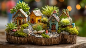 This playful garden corner is a masterclass in contrast. The black slatted fence acts as a dramatic canvas for vibrant green plants and creative decor. The addition of geometric patterns through rugs, planters, and cushions adds a graphic element that’s both fun and polished. Pops of white, muted grays, and lush greenery bring balance, preventing the black from feeling too heavy.
